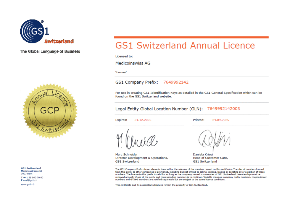 MediCoinSwiss ist offizielles Mitglied von GS1 Switzerland.